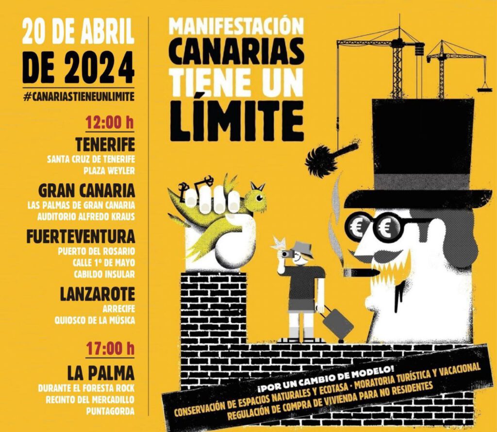 Sí se puede apoya la movilización ciudadana que defenderá un nuevo modelo para Canarias en las calles de las islas del Archipiélago el próximo 20 de abril bajo el bajo el lema Canarias tiene un límite. La organización ecosocialista apuesta por una transición ecosocial en la que el pueblo canario sea el beneficiario y protagonista de la actividad económica, regida por los principios de la sostenibilidad ambiental y social y la soberanía.