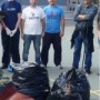 FOTO: Arcila y otros miembros de Sí se puede durante la limpieza del polideportivo de La Gallega.