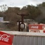 Las esculturas metálicas pertenecen a la colección “Eros, formas y azar”, que en octubre de 2011 estuvieron expuestas en diversas salas y vías de Santa Cruz y La Laguna. Al finalizar esta muestra una parte de las mismas acabaron en este almacén de materiales, entre kioskos para fiestas, vallas y diversos materiales, protegida por una simple tela metálica.