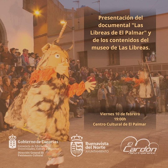 El Ayuntamiento de Buenavista del Norte en colaboración con la Dirección General de Patrimonio Cultural del Gobierno de Canarias presentan este viernes 10 de febrero, el documental Las libreas de El Palmar. El evento tendrá lugar en el centro cultural de El Palmar a las 19:00 horas, además durante el mismo se presentarán los contenidos para el museo interpretativo de Las Libreas que se instalará en la Casa de Osuna de El Palmar en los próximos meses.