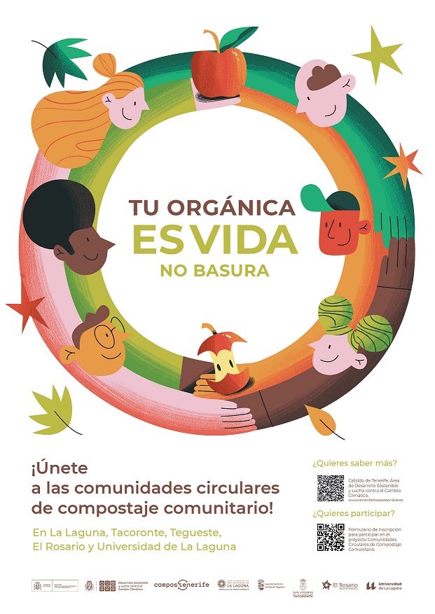El proyecto Comunidades Circulares de Compostaje Comunitario se lleva a cabo junto con los municipios de San Cristóbal de La Laguna, Tacoronte y Tegueste, con el asesoramiento del Cabildo de Tenerife y de la Universidad de La Laguna y está cofinanciado por el Ministerio para la Transición Ecológica y el Reto Demográfico.