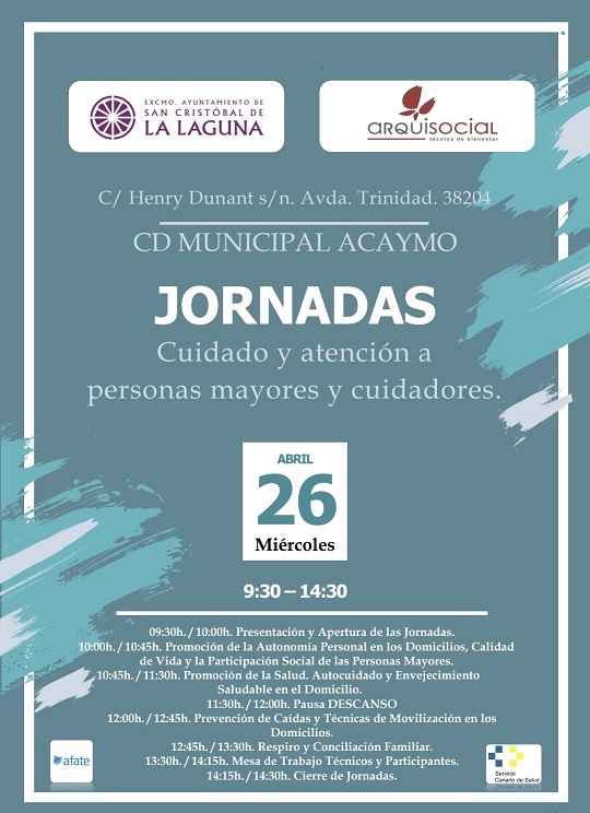 El Centro de Día municipal para mayores Acaymo de La Laguna ha organizado hoy un encuentro formativo para proporcionar a las personas usuarias y a sus cuidadores y cuidadoras conocimientos básicos para la seguridad, salud y bienestar de todas las partes, y la promoción de la autonomía personal y la conciliación familiar, una iniciativa promovida por el Área de Bienestar Social, Arquisocial y el equipo técnico del centro, y que ha contado con la participación de la Asociación de Familiares y Cuidadores de enfermos de Alzheimer y otras demencias de Tenerife (AFATE) y de la Asociación de Cuidadoras/es, Familiares y Amigos/as de Personas con Dependencia, Alzheimer y otras Demencias (Acufade), así como la colaboración del Servicio Canario de Salud.