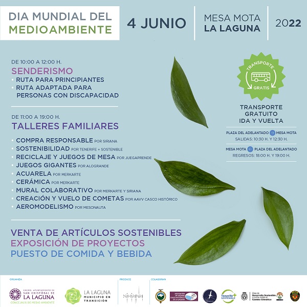 La Concejalía de Medio Ambiente del Ayuntamiento de La Laguna ha presentado hoy el amplio programa de actividades que va a poner en marcha desde este sábado para conmemorar el Día Mundial del Medio Ambiente, una iniciativa de sensibilización que se extenderá durante varias semanas y a la que se han sumado diversas entidades y organizaciones del municipio y de la Isla. El programa contará con exposiciones, charlas, actividades en la naturaleza, conciertos, arte, talleres y un gran evento en la Mesa Mota de concienciación y diversión sostenible para todas las familias, con transporte gratuito desde la plaza del Adelantado.