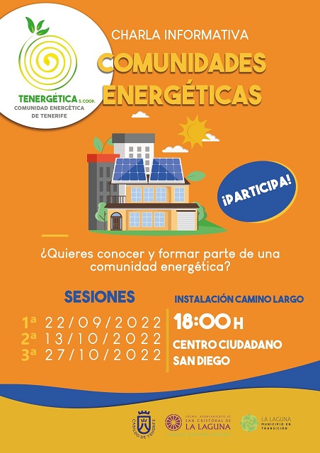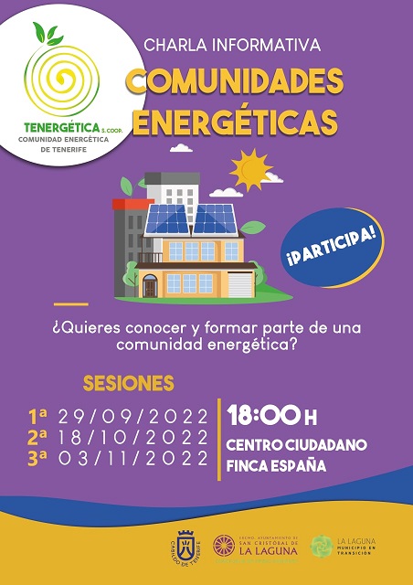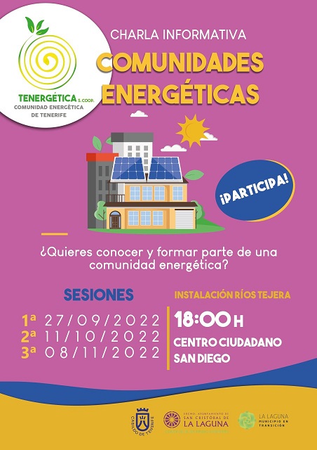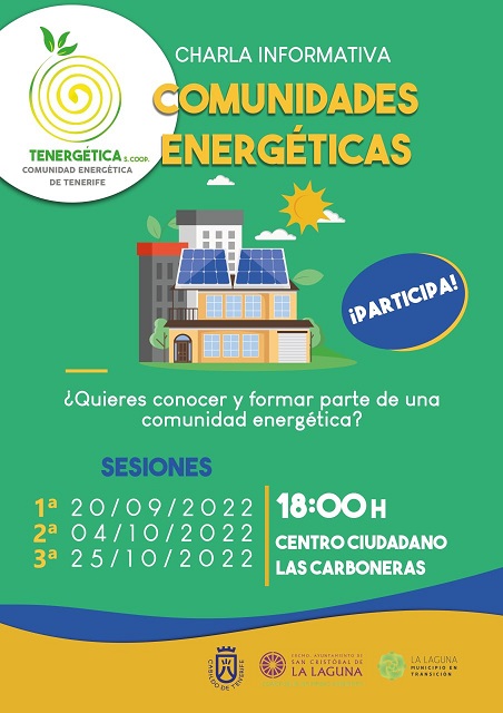 Esta acción sobre comunidades energéticas comenzará el 15 de septiembre en las instalaciones del centro ciudadano de Punta del Hidalgo y continuará, hasta final de año, en los centros ciudadanos de Las Carboneras (Anaga), San Diego y Finca España , donde finalizará el 20 de diciembre. El Ayuntamiento ha previsto ceder temporalmente las cubiertas de instalaciones públicas ubicadas en estas zonas para las instalaciones fotovoltaicas necesarias en la puesta en marcha de comunidades energéticas y que incluyen, además de los dos primeros centros ciudadanos, el colegio Camino Largo, el pabellón Juan Ríos Tejera y el complejo deportivo Islas Canarias. Podrían adherirse a este proceso las personas que residan en un radio de 500 metros de la infraestructura municipal.