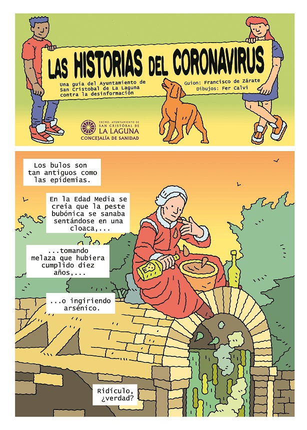 El área de Salud del Ayuntamiento de La Laguna ha decidido plantar cara a los bulos y las fake news que están surgiendo en torno a la COVID-19 y que están provocando una situación de desinformación sin precedentes en el mundo. Para intentar prevenir y concienciar a la población frente a esta infodemia, desde la concejalía que dirige José Luis Hernández se lanzará un cómic, elaborado por el guionista lagunero Francisco de Zárate y el dibujante argentino Fernando Calvi, en el que se desmontan algunas de las mentiras y se advierte de la necesidad de confirmar la veracidad de los datos.