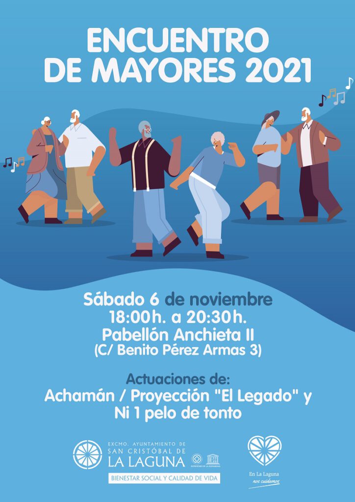 El Área de Bienestar Social del Ayuntamiento de La Laguna recupera esta tarde el tradicional Encuentro de Mayores anual tras el parón pandémico, un acto que contará con todas las medidas de seguridad sanitaria y que congregará a centenares de personas en el pabellón Anchieta II. Con un programa elaborado por las y los representantes de las más de 30 asociaciones de mayores del municipio, ofrecerá una tarde de música, ocio e intercambio de experiencias con todas las medidas de seguridad sanitaria vigentes, una actividad muy esperada después de 20 meses de pandemia y que forma parte de un amplio programa de acción para plantarle cara a la soledad no deseada, afrontar los retos que supone el envejecimiento poblacional y convertir a La Laguna en una Ciudad Amigable con las Personas Mayores que cuida y se cuida.