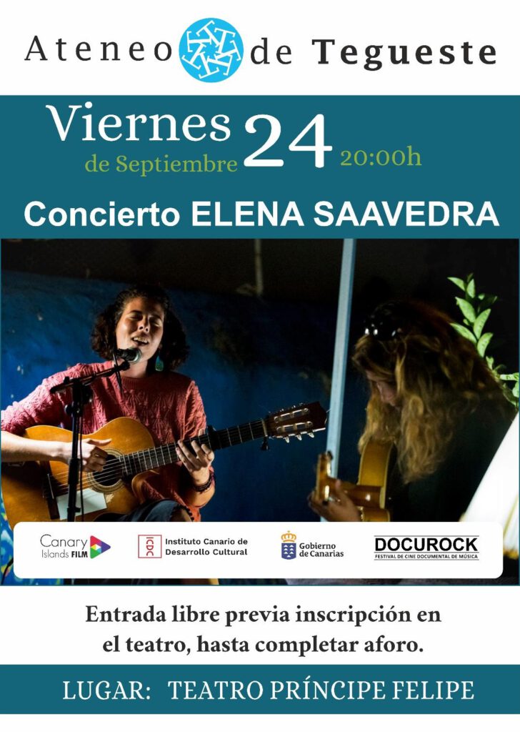 Antes de la exhibición del documental en la pantalla del teatro Príncipe Felipe de Tegueste, el público podrá disfrutar de un concierto acústico a cargo de la cantautora tinerfeña Elena Saavedra, que presentará su nuevo disco, Mi calma. Su carrera se caracteriza por la autogestión y la independencia.