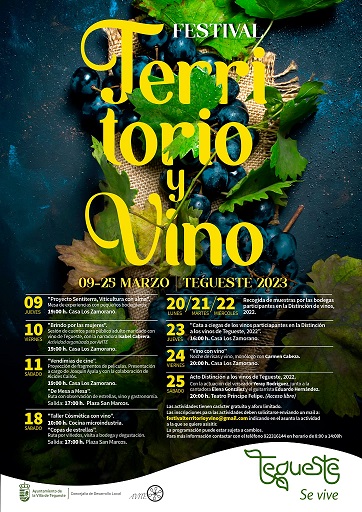 Entre los días 20 y 22 de marzo se ejecutará la recogida de muestras de vino por las bodegas participantes en la Distinción a los Vinos de Tegueste 2022, un proceso que continuará el día 23 con la tradicional cata a ciegas y que culminará el 25 de marzo con el Acto de Distinción a los Vinos de Tegueste 2022 con la entrega de galardones a los premiados. Este evento, de acceso libre, contará con la actuación del verseador Yeray Rodríguez, la cantadora Elena González y el guitarrista Eduardo Hernández. Será en el Teatro Príncipe Felipe a partir de las 20:00 horas.